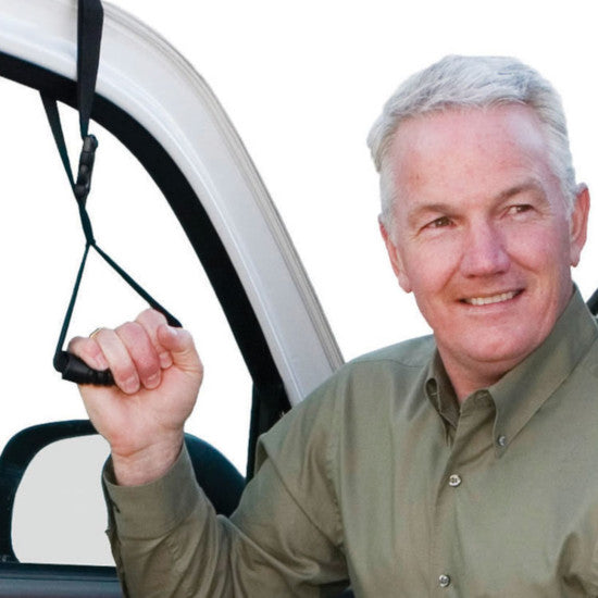 Easy: Installs and removes in seconds.Universal: Fits any framed car window.Durable: Sturdy nylon construction.Versatile: Adjustable length.Secure: No-slip rubber contour grip.5 Inches Ergonomic HandleThe 5 inch long ergonomic rubber handle is easy and comfortable to grip while standing from your vehicle.Up To 250 Pounds - Strong and DurableThe CarCaddie will fit any car, truck, or van and buckles around the door frame in just minutes.7" - 16" Length - AdjustableThe CarCaddie?s nylon strap is adjustable in length from 7?-16? to make your transfers as comfortable as possible.