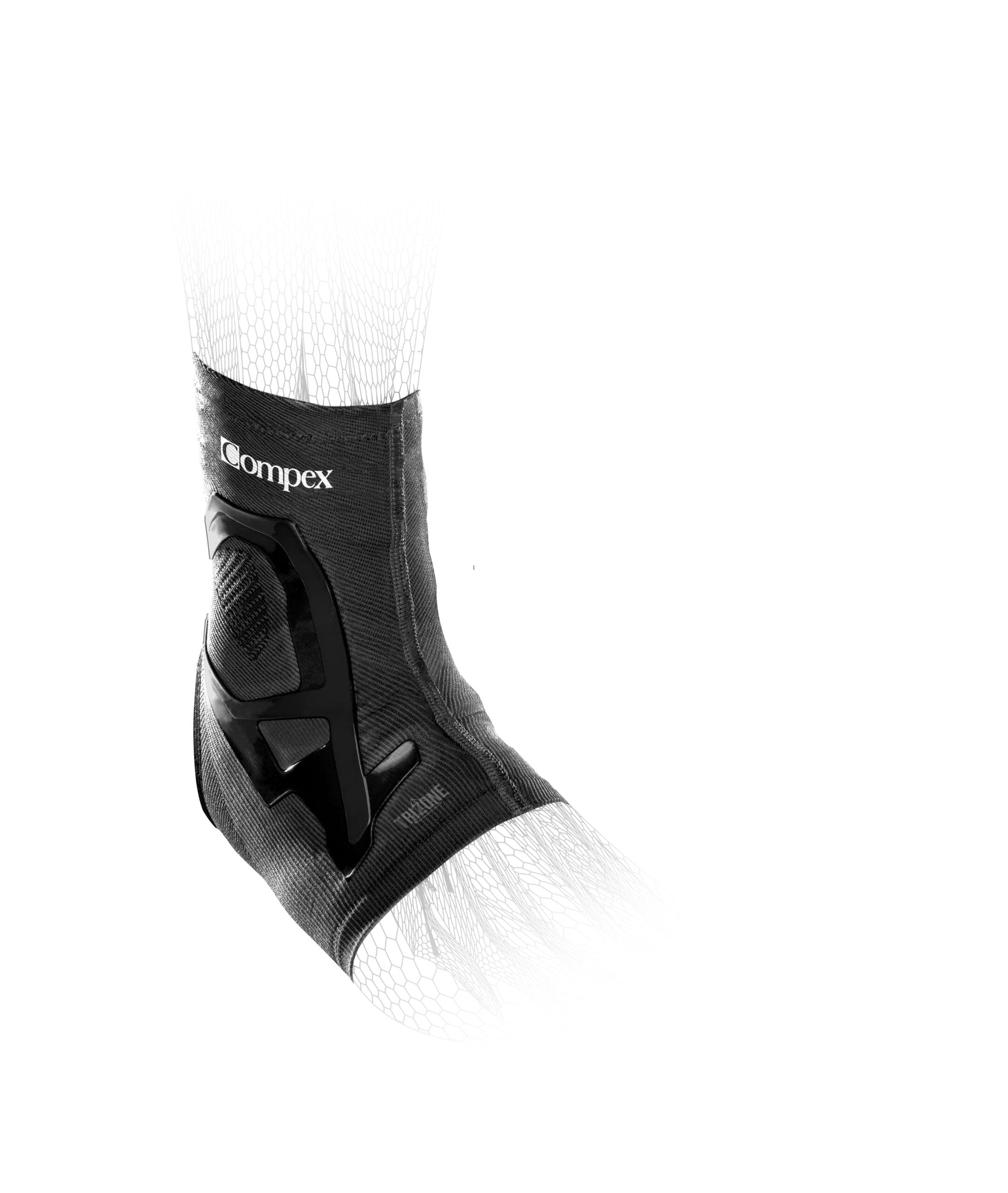 Features:Compex Trizone products combine 3 strategically placed compression zones with supportive benefits of injected silicone bands to optimize athletes’ peak performance.Trizone Ankle; Compressive knit provides support and stability.Tape-like silicone bands reinforce support.Sizing Chart